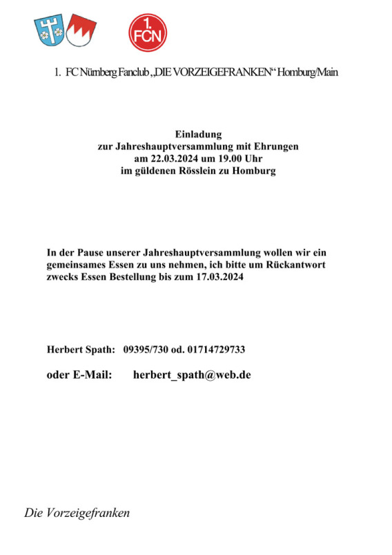 Es wünscht auf diesem Wege die Vorstandschaft der "Vorzeigefranken" allen Mitgliedern, Gönnern, Freunden und allen "Clubberen" ein ruhiges, besinnliches und frohes Weihnachtsfest.